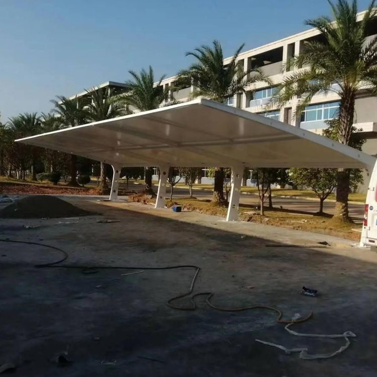 随着城市化进程的不断加快,停车问题越来越成为城市管理中的一大难题。在众多解决方案中,玉龙的7字型膜结构停车棚凭借其独特的设计和优越的性能,逐渐受到广泛关注。这种停车棚不仅在美观上颇具现代感,还在功能性、耐用性和环保性等多方面表现出色,是当下城市停车设施的理想选择。 一、7字型膜结构停车棚的设计理念7字型膜结构停车棚的造型如其名,呈现出一种简洁而富有流动感的设计,以“7”字形